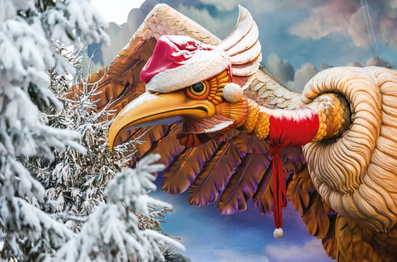 Nadien lopen we verder richting Vogel Rok: een achtbaan waarin je wordt meegenomen door een enorme roofvogel voor een vlucht in het donker. Een van mijn favorieten.